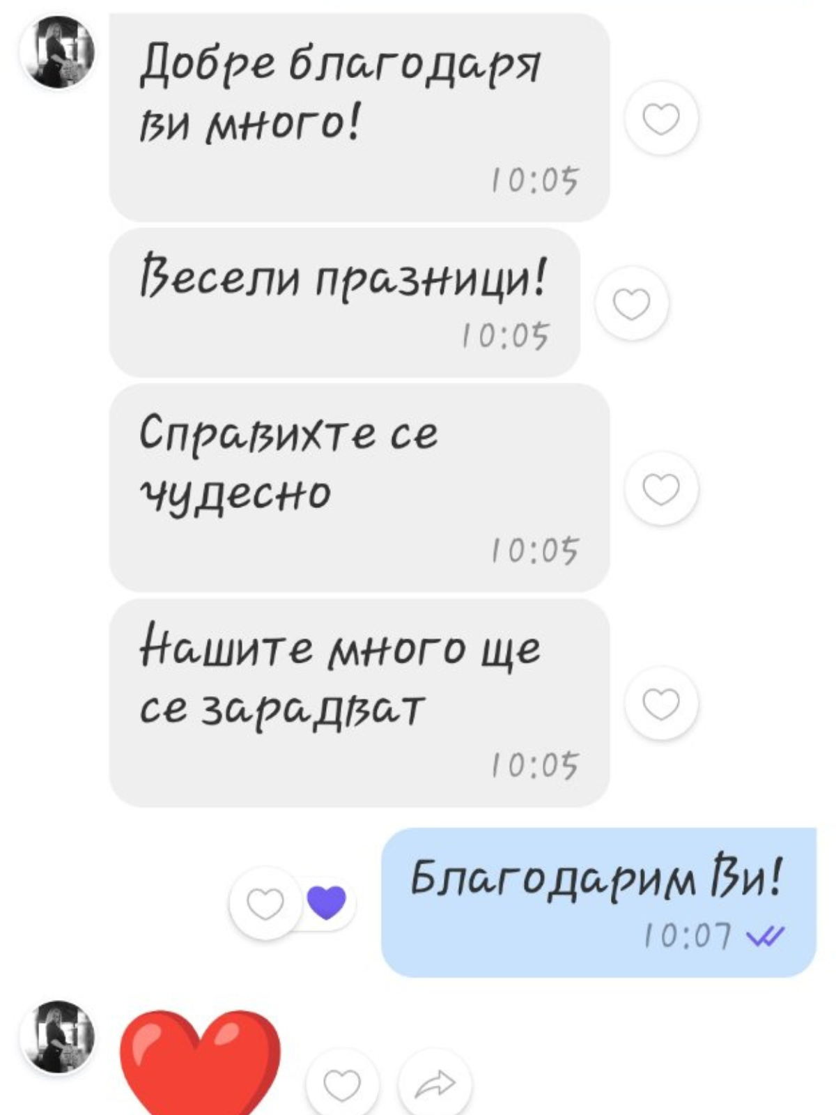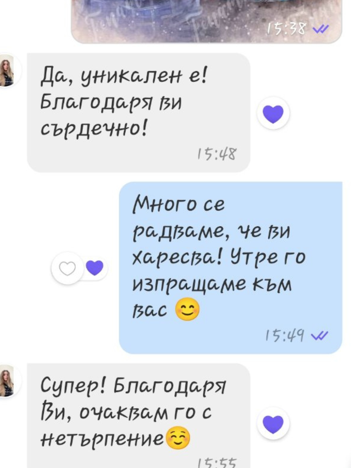 from 137 reviewsЗдравейте!-аз вече написах коментар под ваш пост във фейсбук..ОЧАРОВАНА СЪМ!..БЛАГОДАРЯ ВИ!