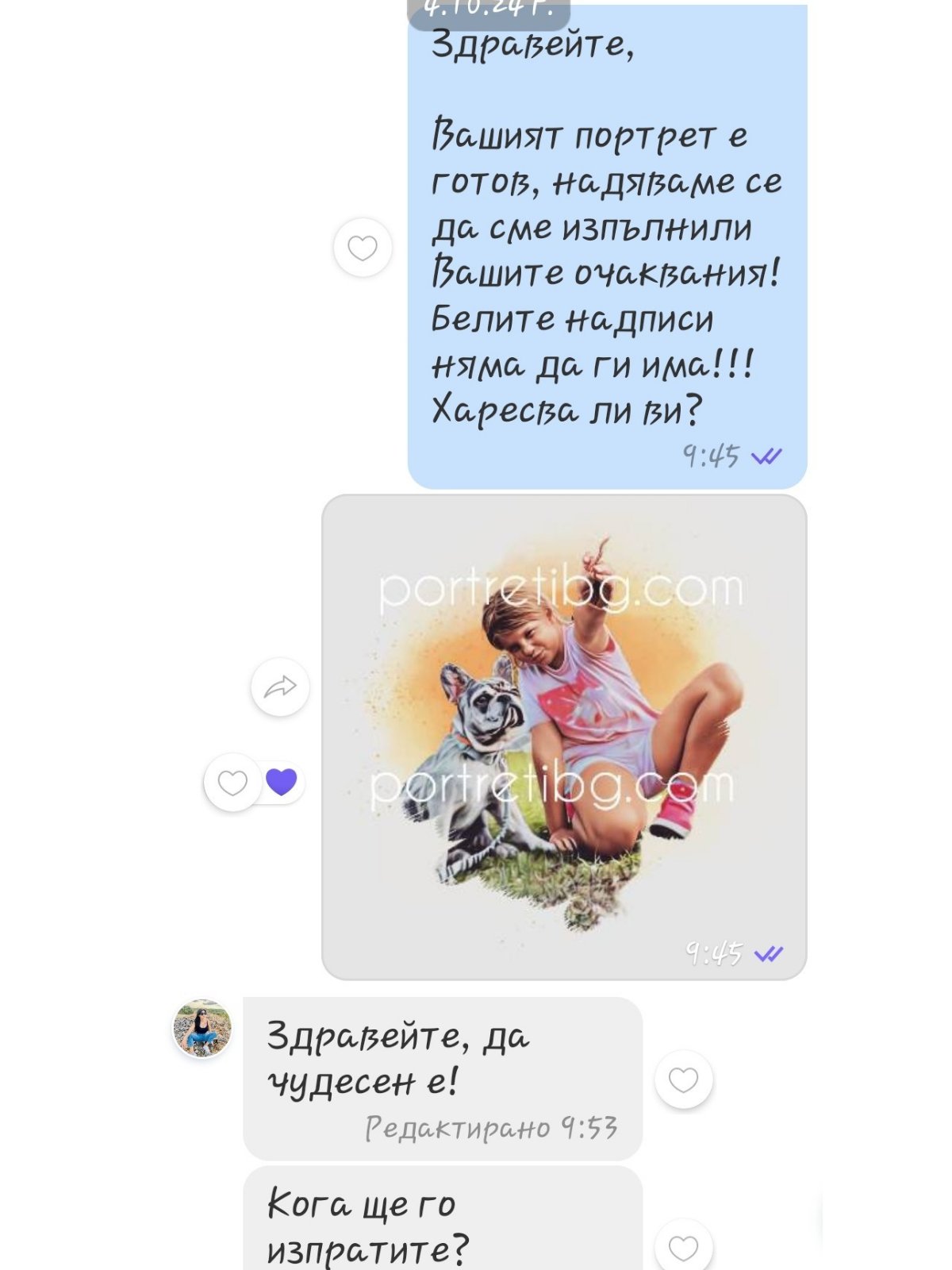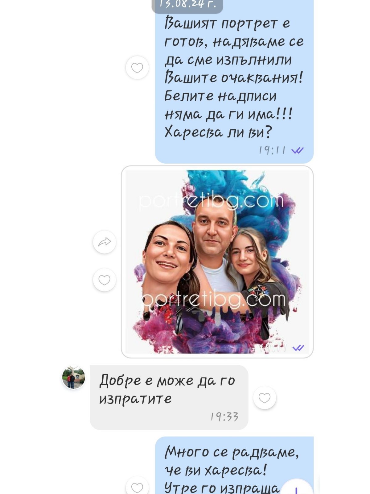 До 1-3 дни ще изпратим вашите портрети за одобрение. Прегледайте, одобрете или поискайте редакции.