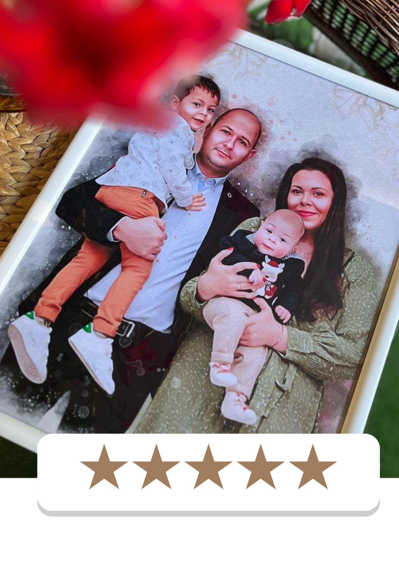 Добавете снимка на която се виждат лицата на хората и е с хубаво качество. Може да добавите обща снимка или отделни снимки, често хората нямат снимки заедно. Нашите дизайнери прекарват часове, създавайки вашия дигитален портрет, така че завършеното произведение на изкуството да изглежда като ръчно рисуван шедьовър.